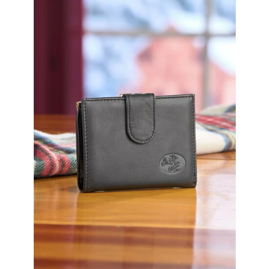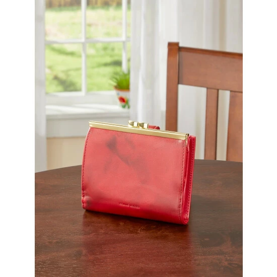 This compact, sophisticated wallet is proof that a billfold doesn’t need to be big and bulky in order to hold all the essentials. This double cardex is made of soft, texturedcrunch leather and features RFID protection against electronic thieves, a framed coin purse, 16 slots for credit, debit, and discount cards; a large bill compartment, 8 storage pockets, ID window, and a double-snap closure to keep everything safe and secure.