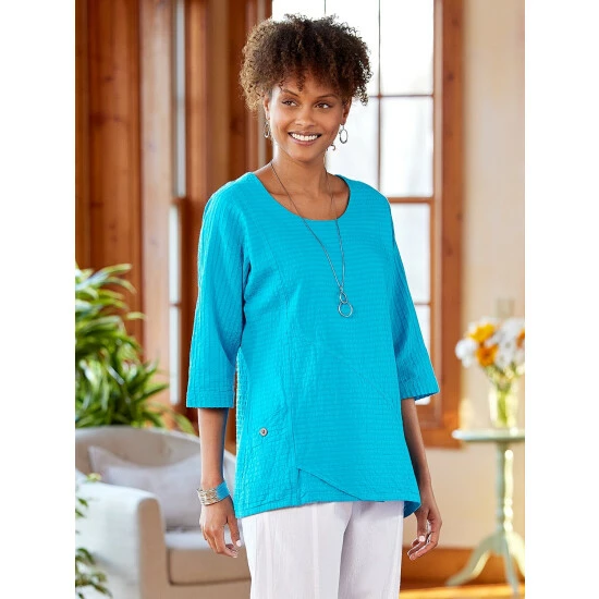 This classic Shaker-stitched cardigan is a luxurious blend of cotton and cashmere that’s not only silky soft and breathable, but it also has an elegance about it that belies the sweater’s simple style. It’s the perfect weight for year-round wear and features a full button front and a ribbed scoop neck, cuffs, and hem.