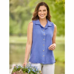 Top 10 🔥 Vermont Country Store 👩 Women’s Crinkle Cotton Sleeveless Button-Front Top White 💯