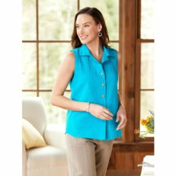 Top 10 ๐ฅ Vermont Country Store ๐ฉ Women’s Crinkle Cotton Sleeveless Button-Front Top White ๐ฏ