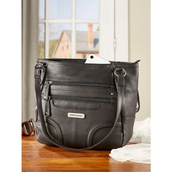 Our Cambridge Purse is crafted from the finest leather with plenty of organizing solutions and classic details to ensure it will be a favorite for years to come. It features silver-toned accents, three main compartments, one zippered and two with magnetic snap closures; multifunction interior pockets, two front zippered pockets, front slash pocket, rear exterior zippered pocket, and a cell phone slash pocket. It’s finished with dual straps for easy carrying or tucking over your shoulder.