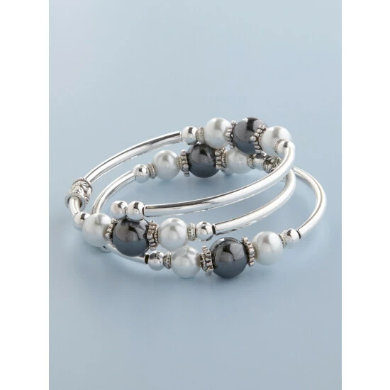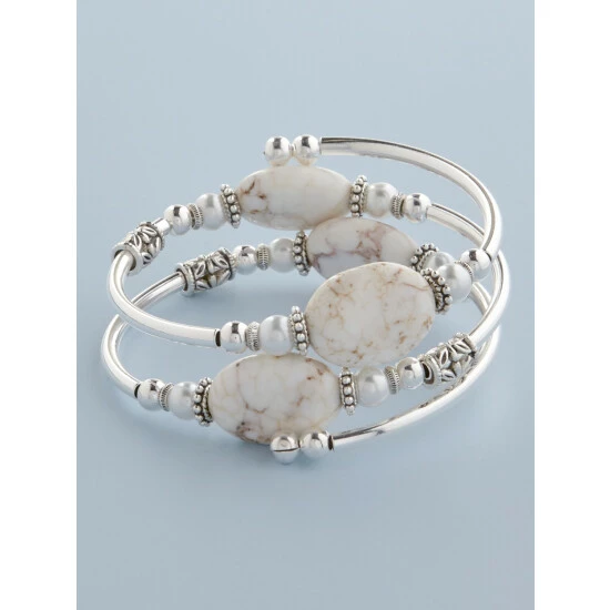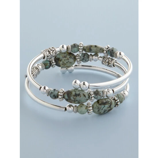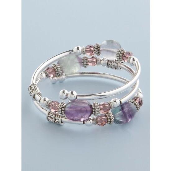 These coil bracelets expand to wrap around just about any size wrist, which not only makes them a great accessory for you, but a great gift, too. The combination of pretty semi-precious stones, glass beads, and silver-toned accents gives these spiral bracelets an elegant, yet laid-back look that will enhance any outfit—casual to dressy. The stones are natural, so each bracelet may vary slightly from the images shown.