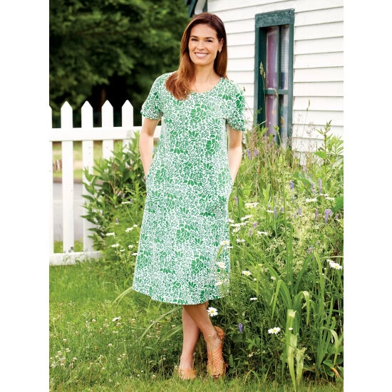 No zips, buttons, or snapsβhurrah! Just pop on this easy-to-wear denim dress and youβre ready to go. Wear it on its own or pair it with leggings for added warmth. Details include a boatneck, 3/4 sleeves, and slant patch pockets in front.