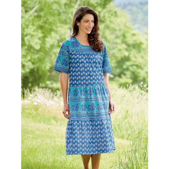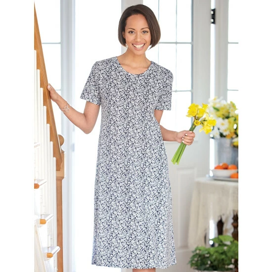 This soft cotton knit dress is a warm-weather and travel essentialβslip it on, and you’re dressed for the day. It packs easily and arrives virtually wrinkle-free! Change it up with a scarf, necklace, or cardigan to create a variety of looks without overfilling your suitcase! It has an easy T-shirt style and is detailed with a round neckline, a graceful drape, and a relaxed silhouette.