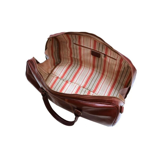 More than just luggage, this duffle bag is the culmination of centuries of fine Italian craftsmanship. It’s handmade in Italy using polished calfskin leather sourced from Tuscany and tanned using only natural vegetable extracts, oils, and time (3 months). The leather then passes through no less than 28 benches where it is cut, skived, sanded, stitched and moreโall by handโuntil it is transformed into this beautiful duffle bag. Features include a brass YKK zip that unzips from one end of the bag to the other for easy packing, an inside zip pocket, dual carrying handles, a detachable shoulder strap, and a durable U.S. made cotton canvas lining.