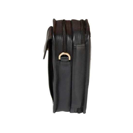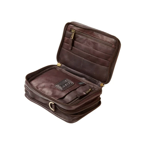 - Features two separate compartments: a book-style compartment that unzips on three sides and a zip-top compartment