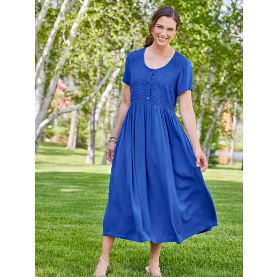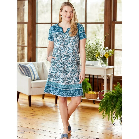 Over the years, our muumuus have proven quite popular, but we realize that one size doesn’t fit all. So now we’re offering this shorter-length version. It falls just below your knee for increased cooling comfort when temperatures are on the riseโplus, it’s styled with the free-flowing fityou love in our longer-length muumuus. A great choice for our petite customers who find our longer-length muumuus to be too long.