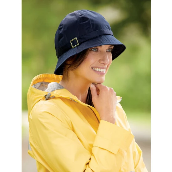 Even when gray skies refuse to clear up, you’ll put on a happy face when wearing this stylish cloche. That’s because it’s made from soft, lightweight water-resistant polyester that keeps you dry and comfy whether it’s drizzling or really coming down. And when the sun finally does appear, the 21/2″ wide trapunto-stitched brim offers plenty of shade and protection. Finished with a smart silvertone buckle along the crown and the hat easily folds up to keep in your purse or coat pocket. One size fits most.
