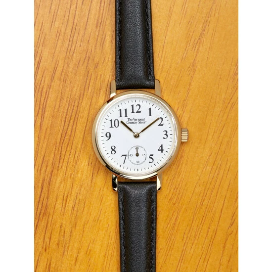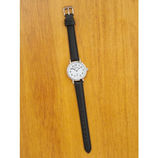 In our high-tech digital world, this simple hand-wound watch has undeniable old-world charmβplus reliability and longevity. Just wind it up in the morning and you’re ready to go for the day! It has classic good looks and features an easy-to-read white face and black numerals, a sub-dial with a second hand, a mineral crystal dial, and a black leather band.
